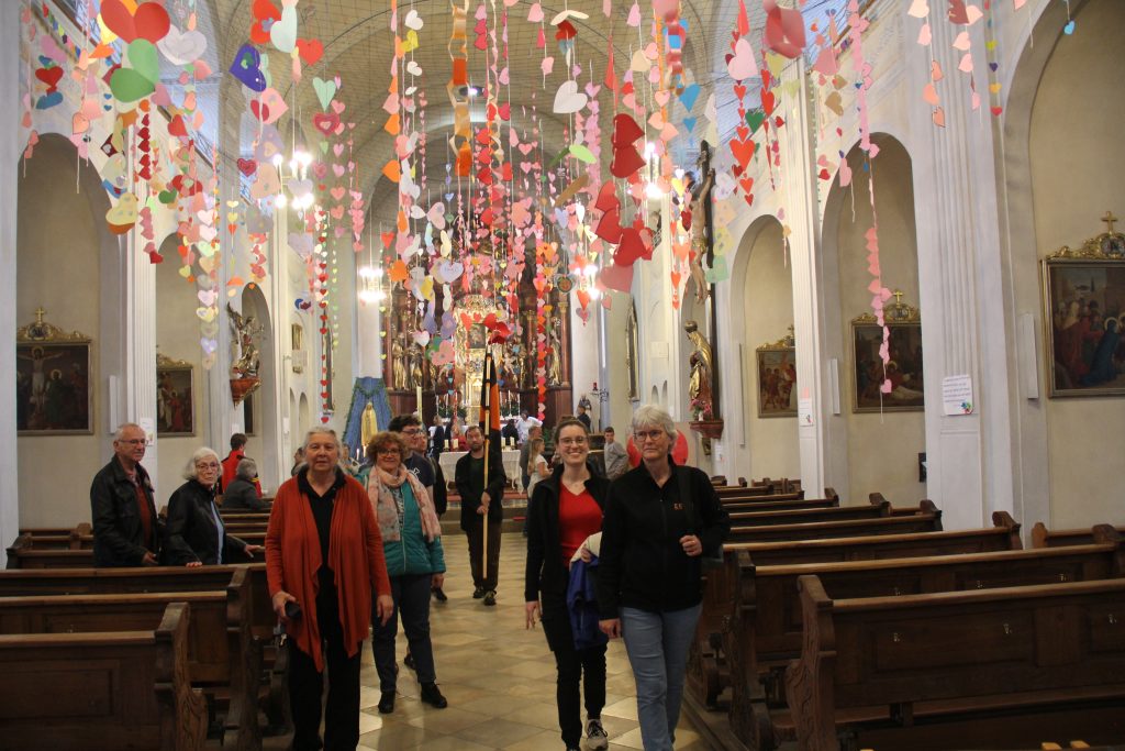 Seit einigen Jahren fahren wir nach Vilsbiburg und besuchen die JuWa am Himmelfahrtstag. Der Wetterbericht war etwas unvorhersehbar, deshalb fuhr nur Florian mit dem Rad. Michael und Isabella hatten sich organisatorisch beteiligt und waren deshalb schon eher vor Ort. Der Rest der Truppe machte sich mit dem Auto auf den Weg zur Bergkirche. Auf Maria-Hilf gab es einen Gottesdienst zum Thema „Sky of Love“. Dieser wurde in diesem Jahr vom bekannten Pfarrer Rainer Maria Schießler geleitet. Von der Decke hingen unzählige Herzen herab. In der Lesung hörten die Anwesenden, dass es für Alles eine bestimmte Zeit gibt. Im Evangelium ging es um die Speisung der 5000. Pfarrer Schießler griff auf, dass unser wertvollstes Gut, die Zeit ist, weil sie nicht zurückgeholt werden kann. Darum sollte der Blick nicht zurück, sondern immer in die Zukunft schauen. Die musikalische Umrahmung kam vom Chor „Mosaik“. Essen und Getränke gab es im Anschluss auf dem verkleinerten Vorplatz. Die Band TRiC- The Rock it Club übernahm die musikalische Unterhaltung. Die Königseder Royal Entertainment traten mit ihrer Feuershow auf. Nach einigen Gruppenfotos ging es wieder Richtung Geisenhausen zurück.