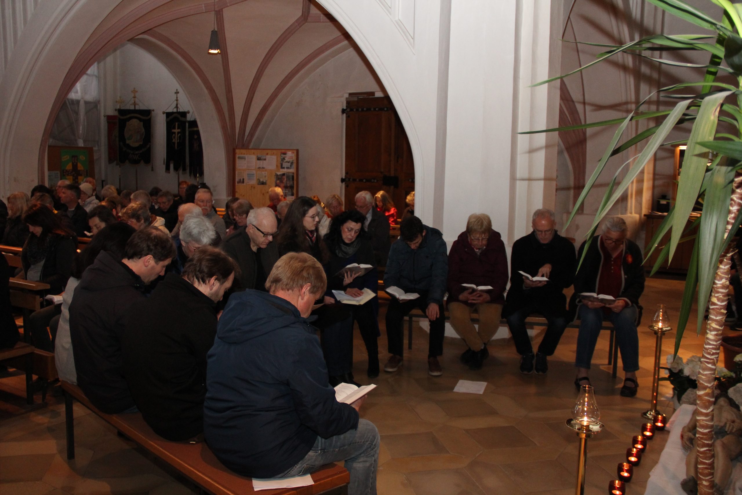Schon seit Jahrzehnten treffen sich die Kolpingmitglieder am Karfreitag Abend in der Pfarrkirche. Hier wird mit einer Gebetstunde an die vielen Christen auf der ganzen Welt gedacht, die nicht so einfach wie wir ihren Glauben leben können. Sie nehmen Nachteile und Gefahren auf sich, um Jesus nachzufolgen, der für uns am Kreuz gestorben ist. Die vorgelesenen Situationsberichte leiteten über zur Lesung aus dem Buch Jesaja. Eine Andacht zum immer wieder aktuellen Thema „Frieden“ und die Fürbitten für verfolgte und bedrängte Christen rundeten den thematischen Teil ab. Ute Feuerecker übernahm wieder den Gesangspart. Mit 50 Mitbetern war die Gebetsstunde sehr gut besucht und gehört auch für Nichtmitglieder zu einem festen Bestandteil der Karwoche.